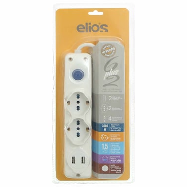 مشترك كهربائي إليوس كومباكت - 6 منافذ + يو اس بي - 3500 واط - أبيض