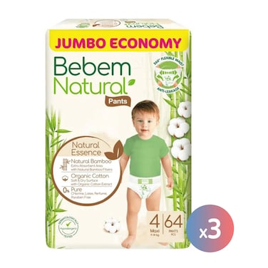 بي بم ناتشورال حفاضة أطفال بانتس - ماكسي - 64 بانتس - 3 قطع