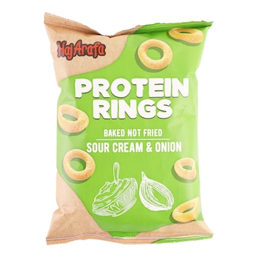 حاج عرفة بروتين رينجز سناكس بطعم الكريمة الحامضة - 60 جرام
