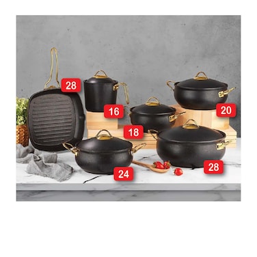 طقم طهي ايديال هوم بومبي جرانيت - 11 قطعة - أسود