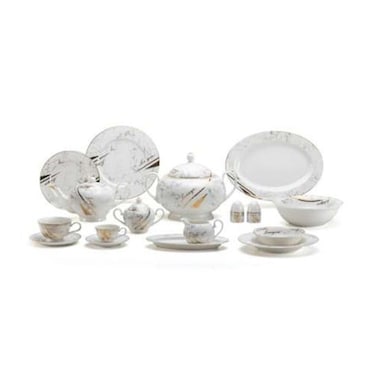 طقم عشاء أنيق، تم تصميم هذا الطقم لإضافة لمسة من الرقي إلى طاولتك مع توفير أطباق متعددة للوجبات اليومية أو المناسبات الخاصة.