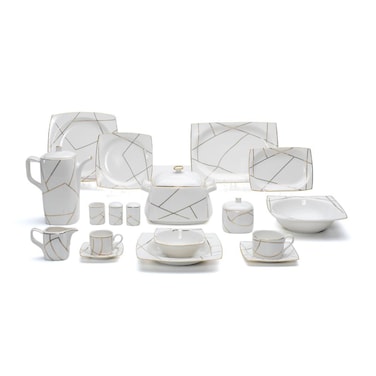 طقم عشاء أنيق، تم تصميم هذا الطقم لإضافة لمسة من الرقي إلى طاولتك مع توفير أطباق متعددة للوجبات اليومية أو المناسبات الخاصة.