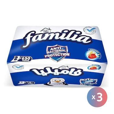 فاميليا مناديل وجه مضادة للبكتيريا - طبقتين - 650 منديل - 3 عبوات