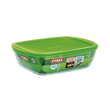 بايركس علبة ثلاجة مستطيلة زجاج بغطاء - 28 سم - أخضر