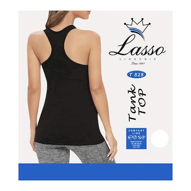 توب لاسو T828 بدون اكمام برقبة دائرية وظهر شكل Y للنساء - ميديم - أسود