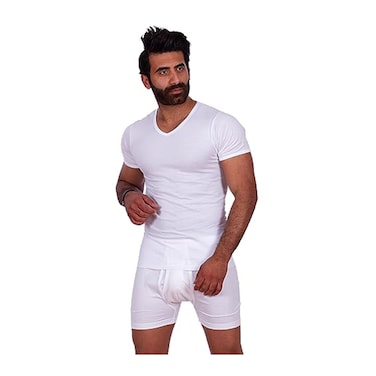 جيل M1599 فانلة نصف كم برقبة عالية للرجال - مقاس 7 - أبيض