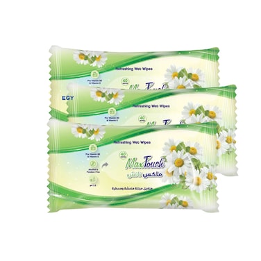 ماكس تاتش مناديل مبللة منعشة - 40 منديل * 3 قطع