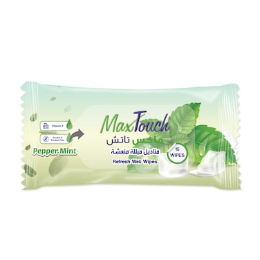 ماكس تاتش مناديل مبللة منعشة - 15 منديل