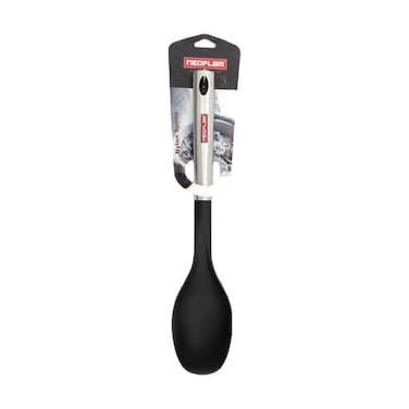 مغرفة نايلون ديلي بمقبض مصنوع من الستانلس ستيل - أسود وفضي