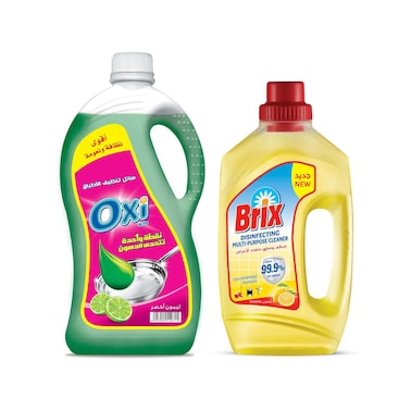 أوكسي سائل غسيل أطباق - بالليمون الأخضر - 2.5 لتر + بريكس منظف - 1 لتر