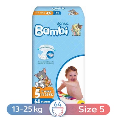 حفاضات أطفال بامبي X-لارج، مقاس 5 - 64 حفاضة