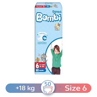 حفاضات أطفال بامبي XX-لارج، مقاس 6 - 50 حفاضة