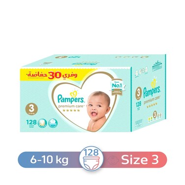 حفاضات بامبرز عناية مميزة 3 حجم ميدي، 6-10 كجم - 128 حفاضة