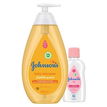 شامبو جونسون للاطفال، جولد، 500 مل + زيت الاطفال - 75 مل