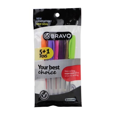طقم اقلام جاف برافو فانسي - 6 أقلام