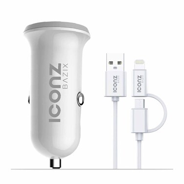 ايقونز XCC07W شاحن سيارة مزدوج مع كابل 2 في1 - 3.4 امبير - أبيض