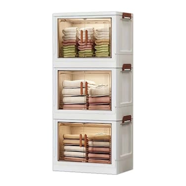 الدولاب القابل للطي مصنوع من مادة بلاستيك البولي بروبيلين السميكة والمتينة وغير السامة والآمنة، وهي قوية وخفيفة الوزن ومثالية لتنظيم الملابس والحفاظ على الأشياء منظمة بشكل أنيق.