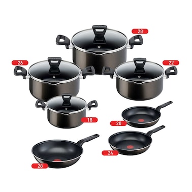تيفال اكس ال انتينس طقم أواني طهي - مقاس 18-22-26-28 مع مقلاة مقاس 20 - 24 مع ووك - مقاس 28