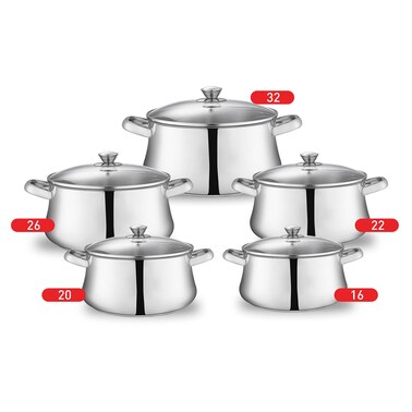 طقم حلل ستانلس ستيل زهران، 16-20-22-26-32 - 10 قطع