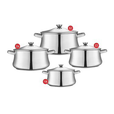 زهران مجموعة طبخ أستانليس ستيل - 18-22-26-32