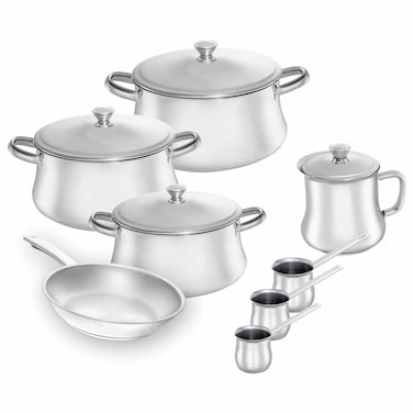 طقم حلل ستانلس ستيل زهران، 18-24-28 - 6 قطع + مقلاة - مقاس 28 + لبانة - مقاس 12 + كسرولة - مقاس 16 + كنك - 3 قطع