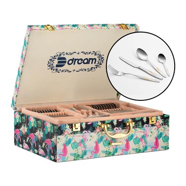 تتكون مجموعة أدوات المائدة هذه من قطع أساسية مثل السكاكين والشوك والملاعق والملاعق الصغيرة، وقد تم تصميمها بدقة لضمان المتانة والراحة. تتميز كل قطعة بتصميم أنيق وعصري، مما يضيف لمسة من الرقي إلى طاولتك.