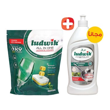 لودفيك أقراص غسالة أطباق - 27 قرص + سائل منظف أطباق - 600 مللي