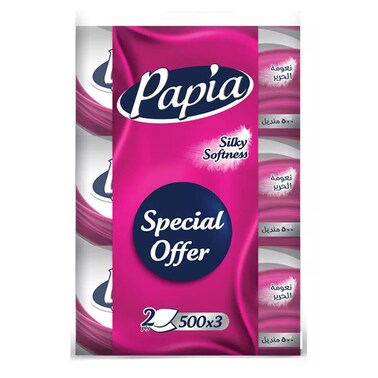 بابيا مناديل وجه - طبقتين - 500 منديل - 3 عبوات