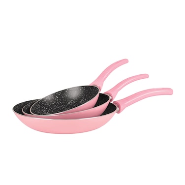 جراندي كوك طقم طاسات قلي جرانيت - 3 قطع - بينك