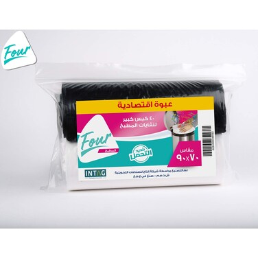 فور أكياس قمامة - 70 * 90 سم - 40 كيس - أسود