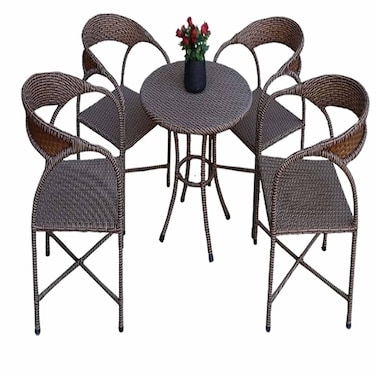 طقم أثاث خارجي رتان من الهلال ، 4 كرسي وترابيزة، بني