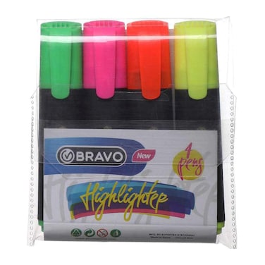 برافو أقلام هايلايتر - 4 أقلام