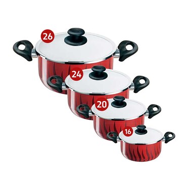 طقم أواني تيفال تيمبو للطهي - 4 قطع - أحمر