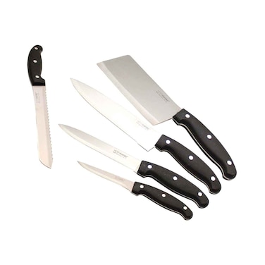 قم سكاكين استانلس ستيل مسنون باليزر 5 قطع بمقبض اسود سريع في التقطيع