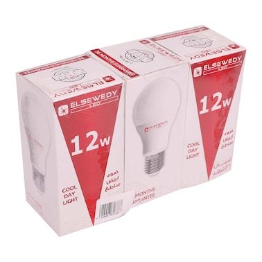 السويدي لمبة ليد - 12 واط - ضوء أبيض ساطع - 3 قطع