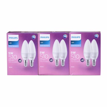 لمبات E14 شمعة من فيليبس، 5 وات - 6 قطع