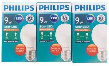 فيليبس ستار ليد لمبات - 9 واط - أبيض دافئ - 3 لمبات
