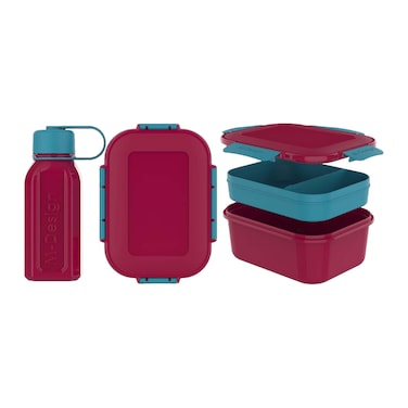 ام-ديزاين طقم غداء مكون من لانش بوكس سعة - 1.6 لتر + زجاجة مياه - 650 مل - فوشيا