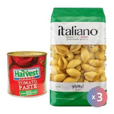 إيطاليانو مكرونة صدف - 400 جرام - 3 أكياس + هارفست صلصة طماطم - 280 جرام