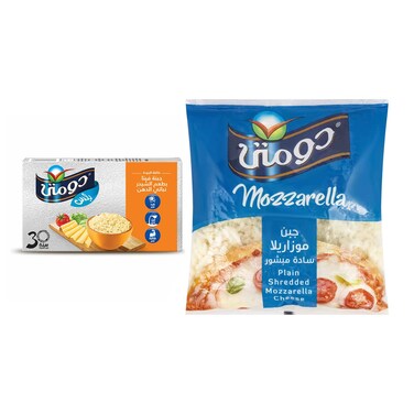دومتي جبنة فيتا بلس بطعم الشيدر - 500 جرام + دومتي جبنة موزاريلا مبشورة - 575 جرام