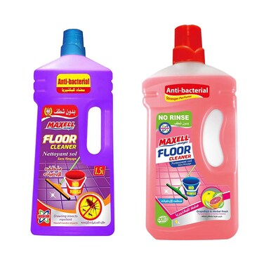 ماكسيل منظف الارضيات طارد للحشرات الزاحفة - 1.5 لتر + ماكسيل منظف الأرضيات برائحة الجريب فروت - 1 لتر