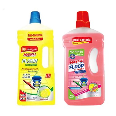 ماكسيل منظف الارضيات برائحة الليمون- 1.5 لتر + ماكسيل منظف الأرضيات برائحة الجريب فروت - 1 لتر