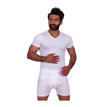 جيل M1809 فانلة نصف كم برقبة شكل V للرجال - مقاس 9 - أبيض