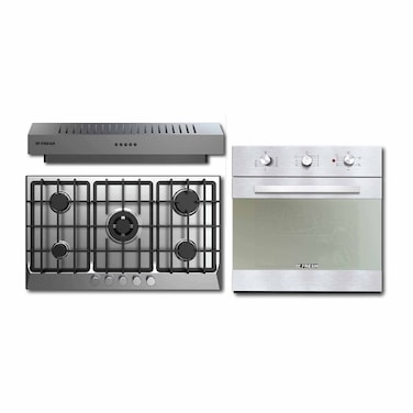 مسطح غاز فريش، 5 شعلة - 90 سم + فرن بلت ان - 60 سم + شفاط بلت ان - 90 سم