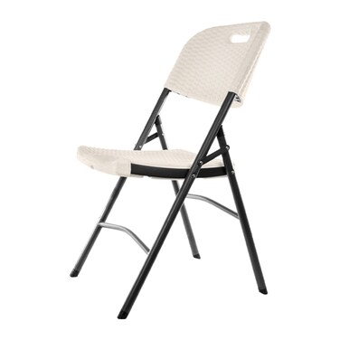 كرسي راتان بهيكل معدني قابل للطي - أبيض