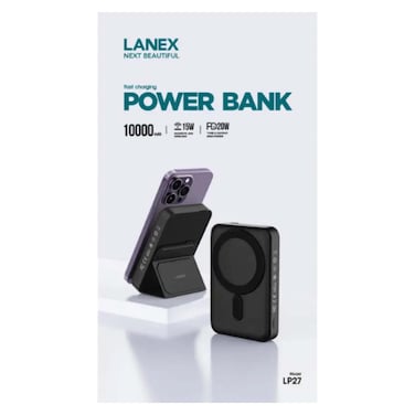 لانيكس باور بانك مغناطيسي لاسلكي - 10000 مللي أمبير - اسود - LP27