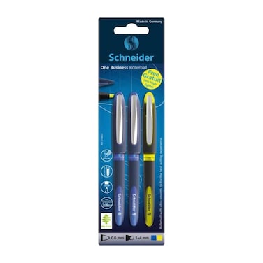 شنايدر طقم أقلام جاف - 0.6 ملم - 2 قلم - أزرق + هايلايتر - أصفر