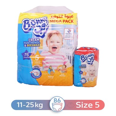 حفاضات للاطفال من بوني - مقاس 5 - 76 + 10 حفاضة