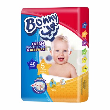 حفاضات بوني للأطفال، مقاس 5 - 40 حفاضة