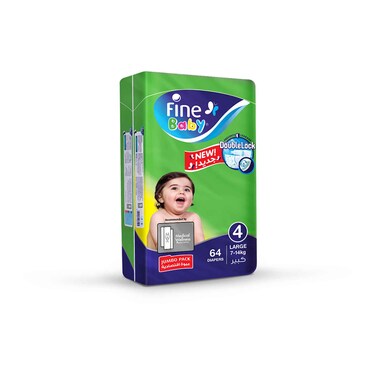 فاين بيبي حفاضات أطفال - مقاس 4 - 7-14 كجم - حجم كبير - 64 حفاضة